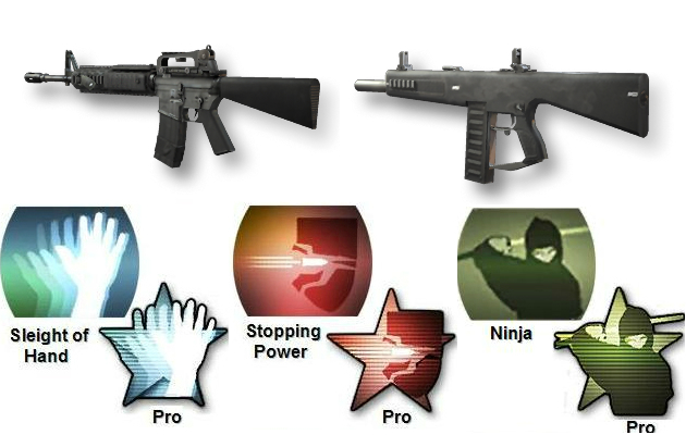 Between Black Ops and Modern Warfare 2, Assault Rifles too stayed the same, for the most part. Some of the mechanics we re-worked, but the guns functioned in the same way over all; using an Assault Rifle gives a blend of the long-range and short-range tactics. One can run and gun, or stay back and pick off enemies when necessary, all without changing your class around too much, if at all. For my Assault Rifle class, I could not pick just one gun, I had to pick both the M16A4 and the SCAR-H as my favorites. It really just depended on the day and mood that I was in, as one is a 3 round burst, and the other is full-auto (respectively) giving a different kind of play style for both. In either case, I equipped them with FMJ which allowed me to really destroy enemies no matter where they were hiding. I backed this up with my trusty AA-12 with a Grip, and again used Claymores and Stun Grenades. My perks were Slight of Hand Pro, Stopping Power Pro, and Ninja Pro.