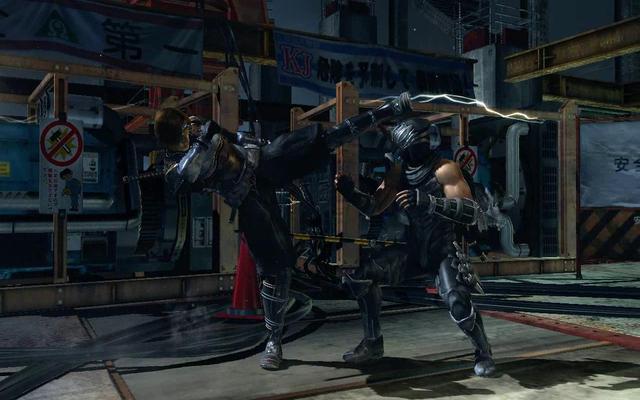 In the gameplay demo, we’re given a nice action packed sequence taking place on a rooftop under construction. Ryu Hayabusa and Hayate ferociously duke it out while dodging around the environment, set against the usual DOA electro-rock musical backdrop.